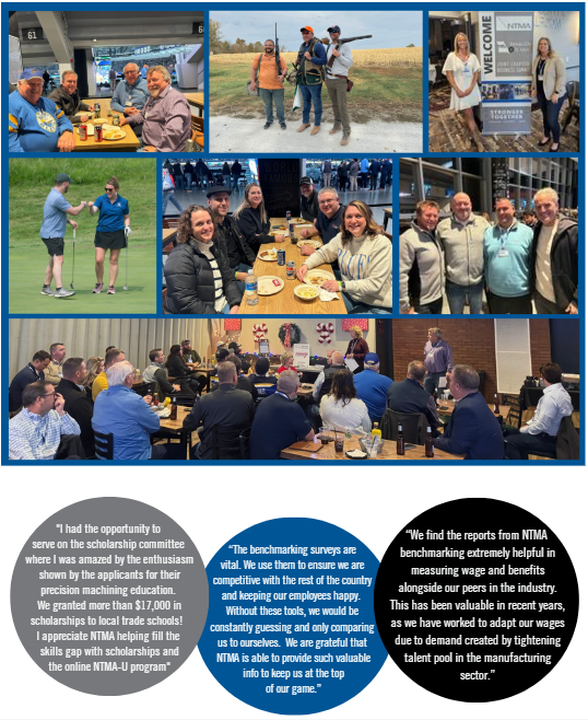 We invite your company to become part of the St. Louis Chapter of the National Tooling & Machining Association (NTMA), a community of precision manufacturing leaders committed to strengthening their businesses and the industry as a whole. Membership connects your shop with peer-driven networking, workforce development resources, industry advocacy, and practical tools designed to help you compete, grow, and plan confidently for the future.